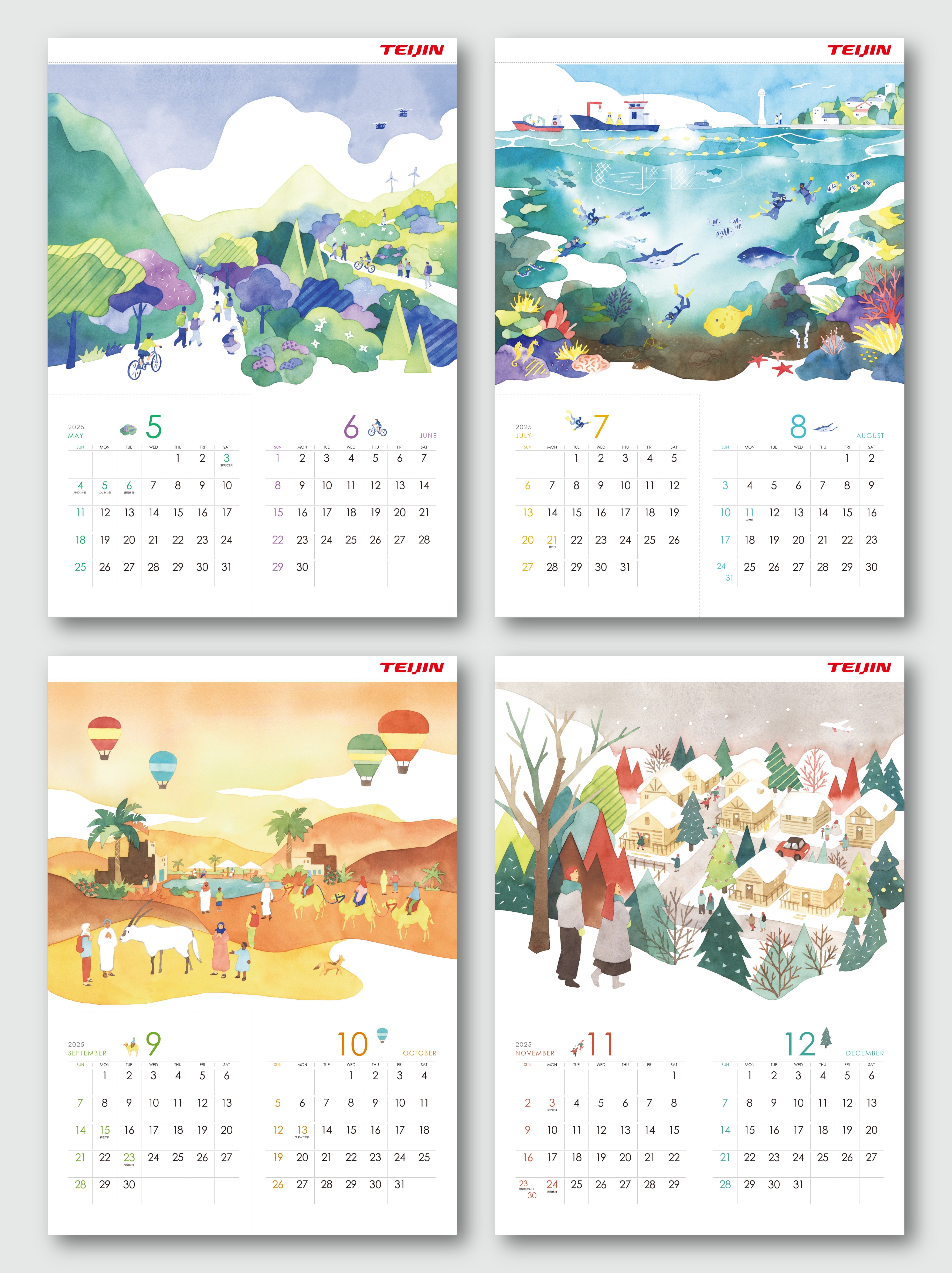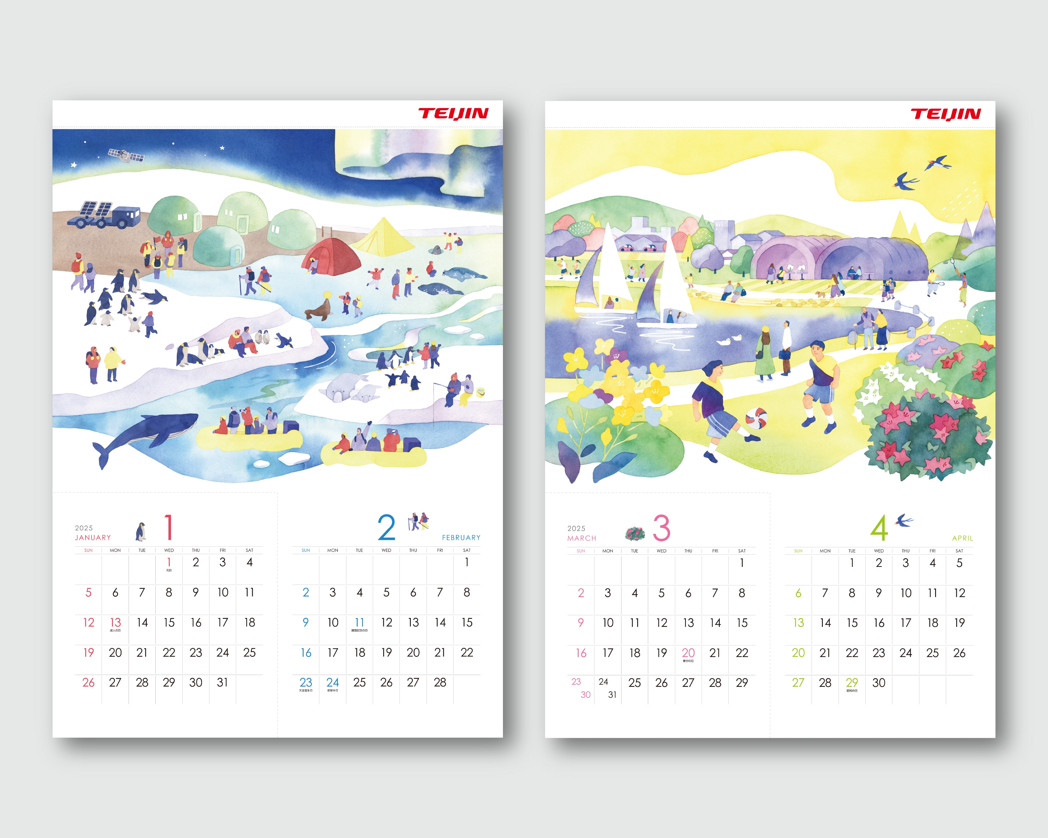 得意先企業や従業員などのステークホルダー向けに配布するカレンダーの制作をご依頼いただきました。日付部分は視認性を重視したシンプルなデザインに、イラストは前年から変化を感じられるよう工夫してほしいというご要望を受け、全体のトーンは踏襲しつつ、印象に変化を加えるデザインをご提案しました。